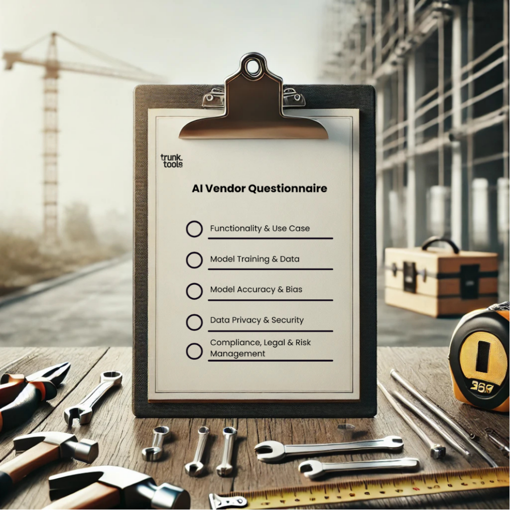 Trunk Tools has spent years developing AI specifically for construction, refining its approach through hands-on experience. Alongside top AI legal experts and our customers, the team created an AI Vendor Questionnaire↗ in hopes of setting a higher standard for evaluating AI solutions. Whether evaluating a new tool or scrutinizing a long-term investment, this framework is designed to favor real answers over buzzwords.